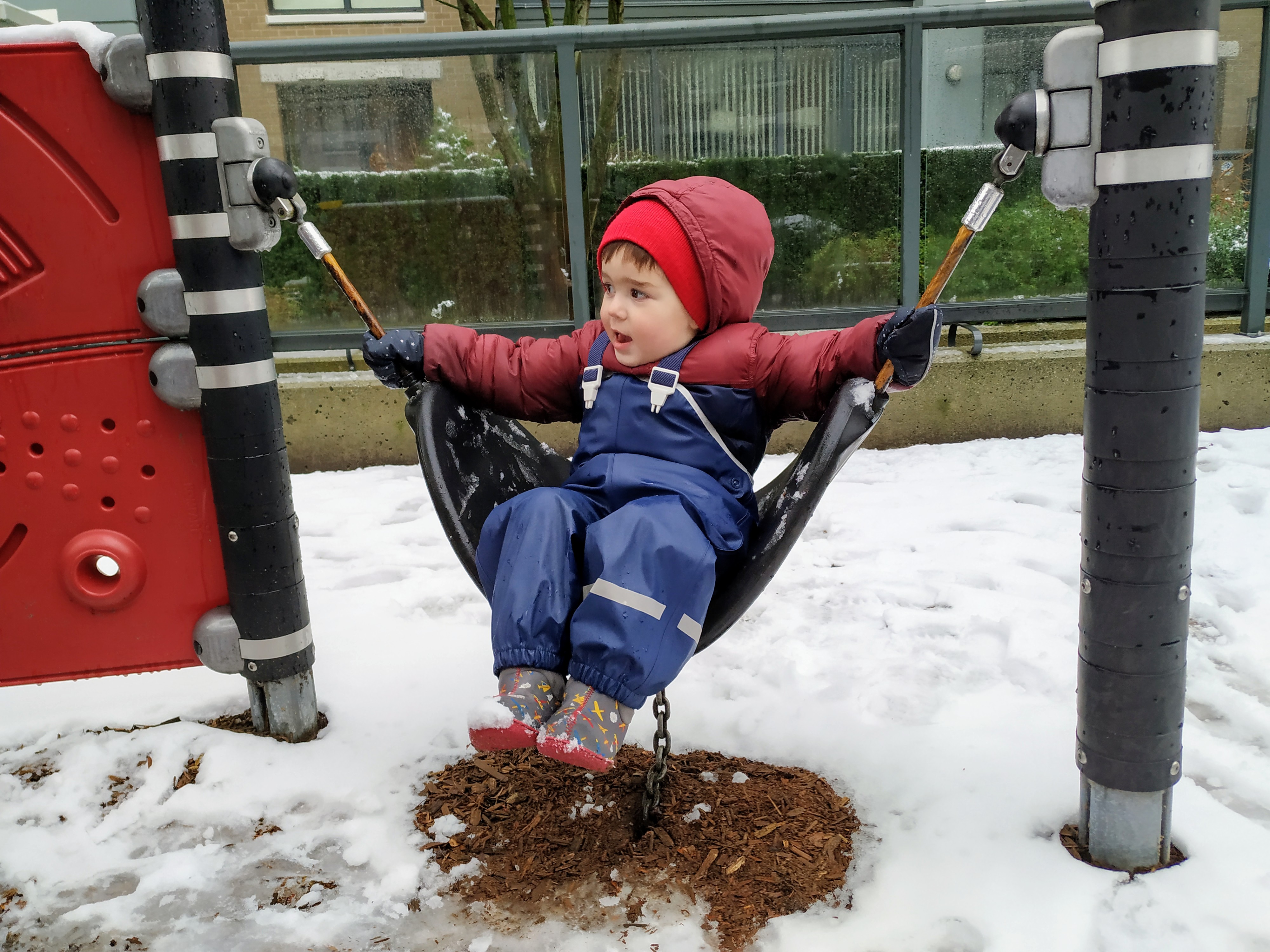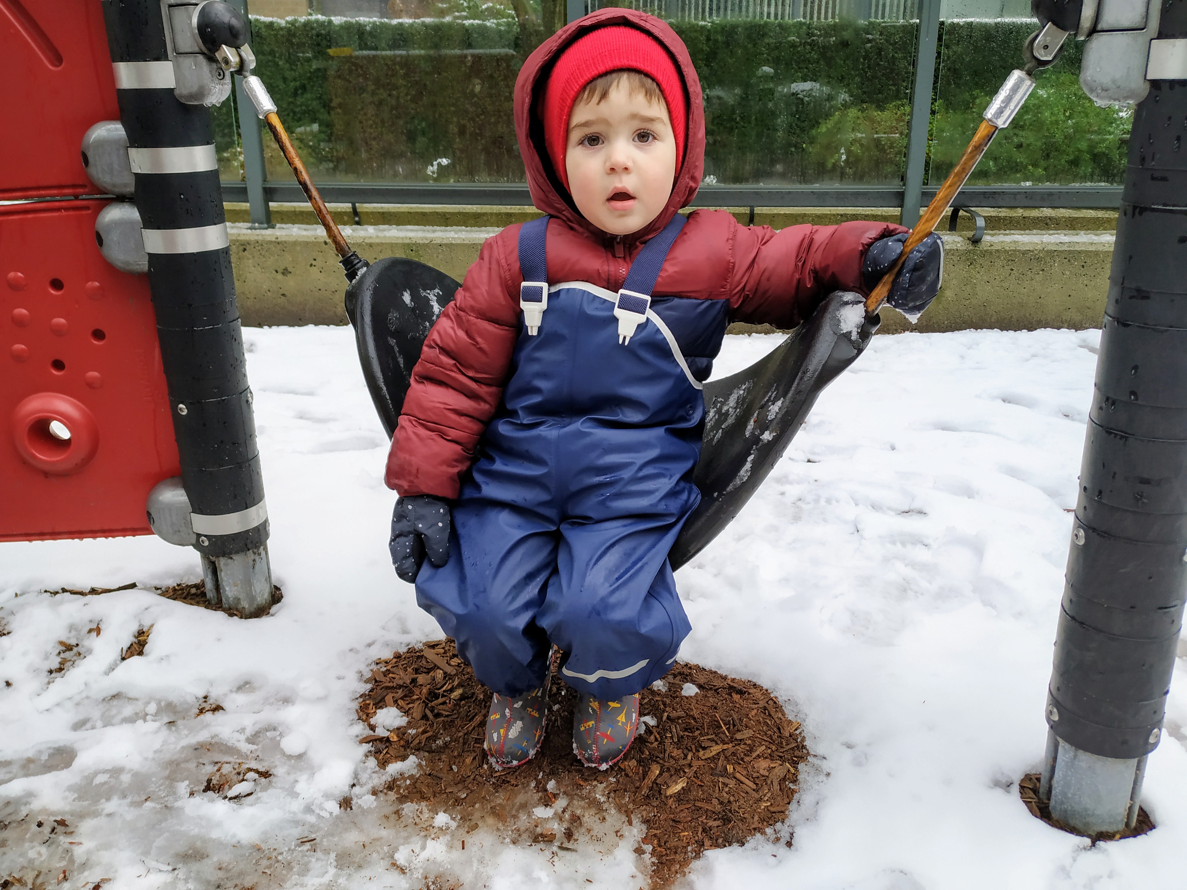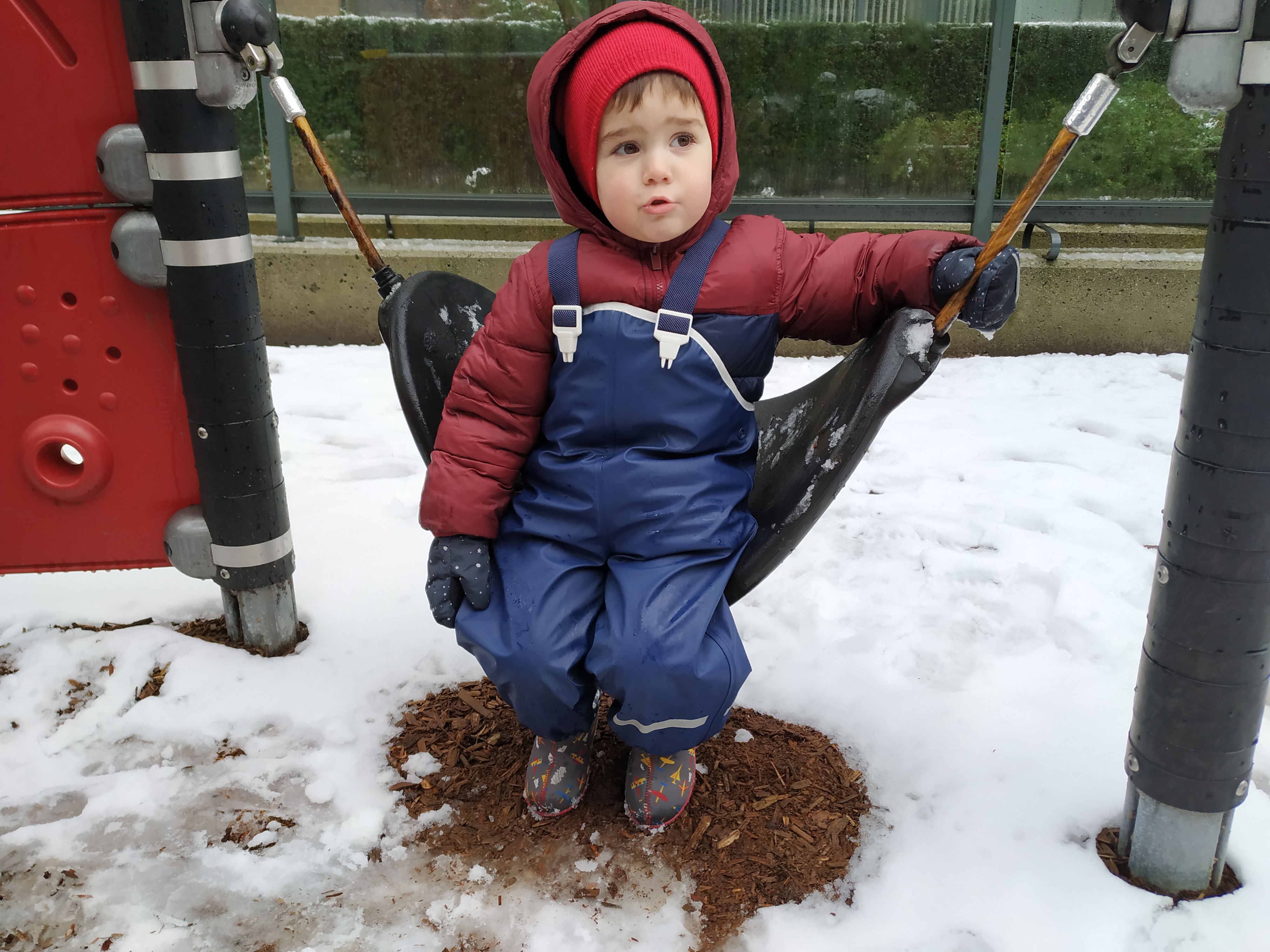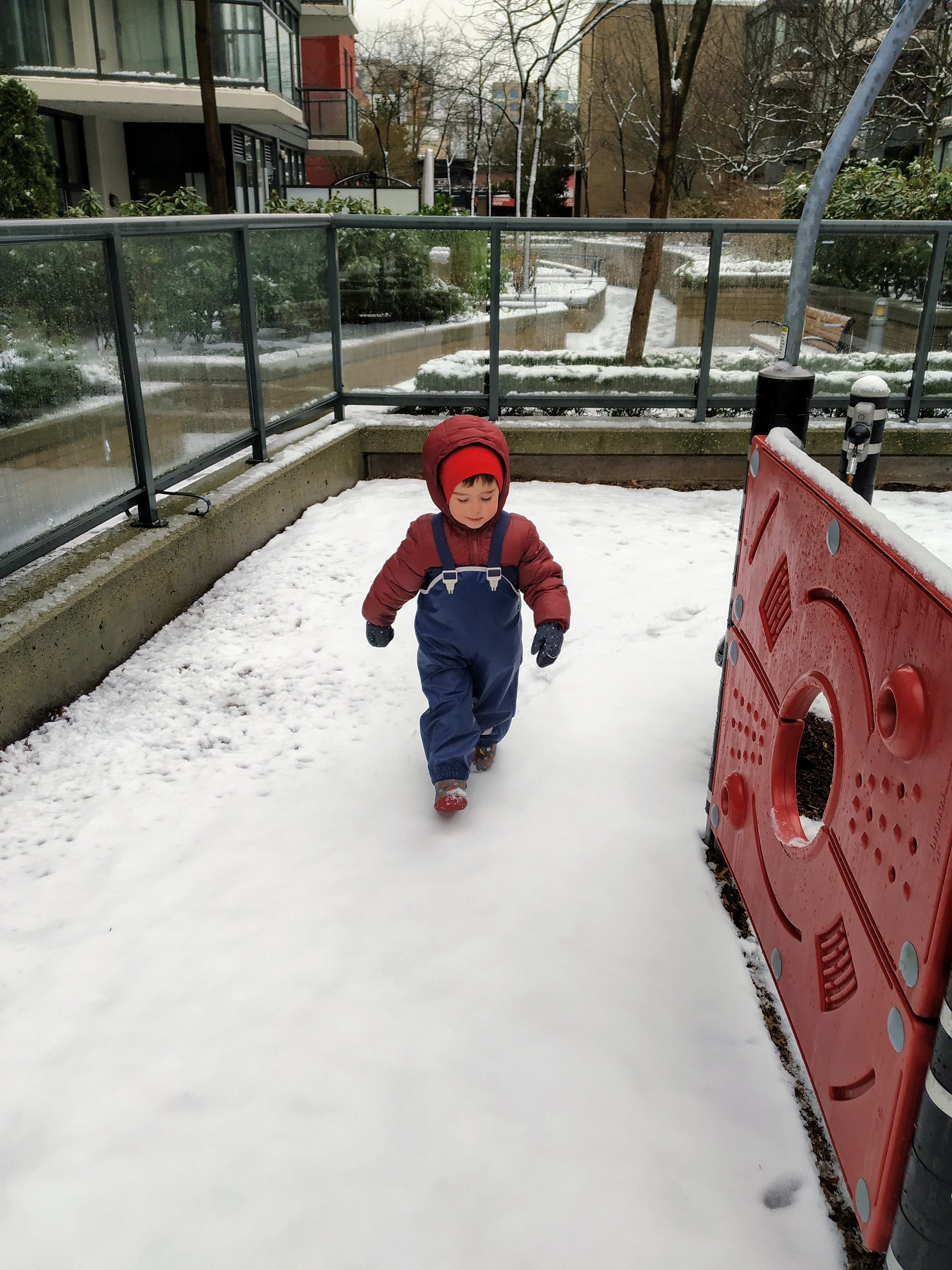 Днес за малко да отбележим първи ден в Канада, в който да не сме излизали. За щастие по обяд снеговалежът спря и слязохме до вътрешния двор да поиграем на магазин и на “садене на зеленчуци”.